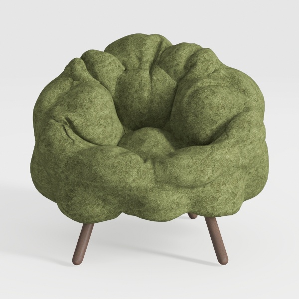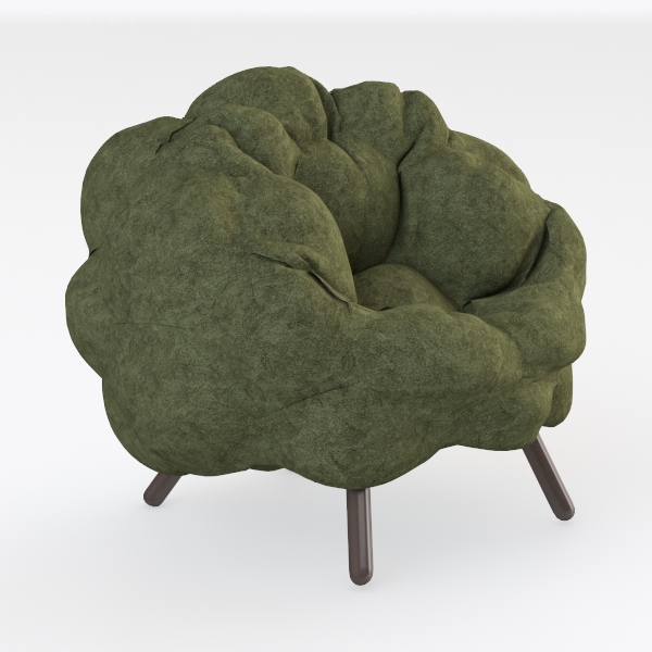 Inspired by the soft, billowing shapes of natural clouds, this armchair merges organic curves with a contemporary touch, creating a piece that feels both whimsical and grounded. Its exterior, crafted from a textured, moss-green upholstery, catches light subtly, with gentle folds and indents mimicking the soft undulations of a cloud in motion. The fabric invites tactile interaction—plush to the touch, it promises a cozy, hug-like embrace that cradle’s the body, making it an instant favorite for unwinding.