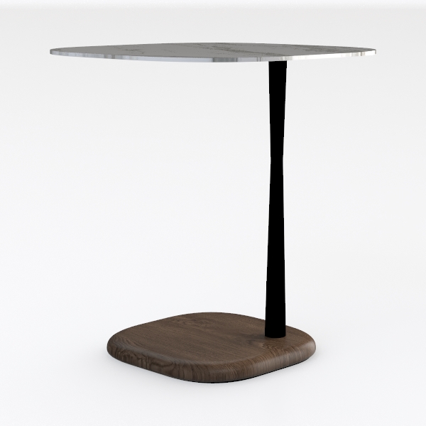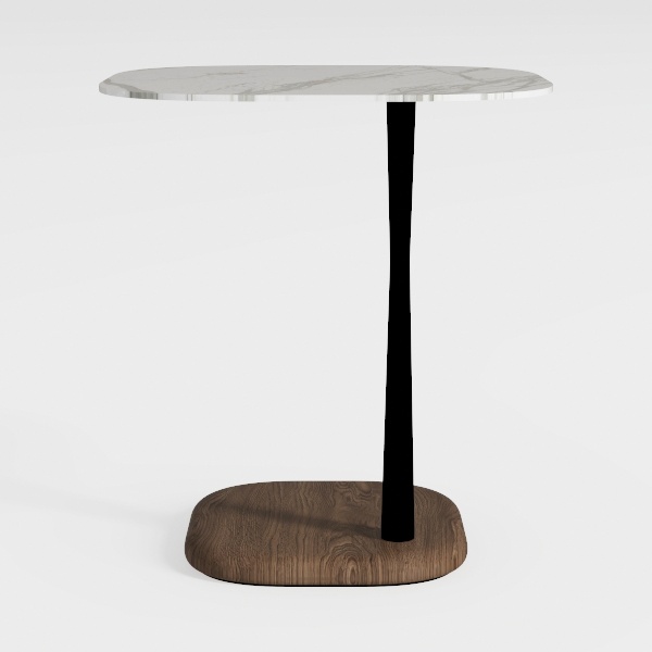 Inspired by natural stone and organic lines, this side table features a polished, smooth marble-like top with soft gray veining for a serene look. Its warm, textured wooden base contrasts beautifully with the sleek black metal frame, creating a balanced, contemporary vibe. Ideal for modern minimal or Scandinavian living rooms, it pairs well with light sofas and metal decor. A stable, compact design, it holds drinks and small items with ease, enhancing both functionality and style.