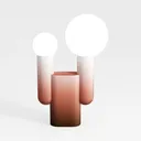 A 3D model of a Table Lamp, featuring two circular glass shades and a gradient brown metal base, with a modern minimalist geometric aesthetic. It has smooth surfaces and is suitable for home decor in bedrooms or living rooms.