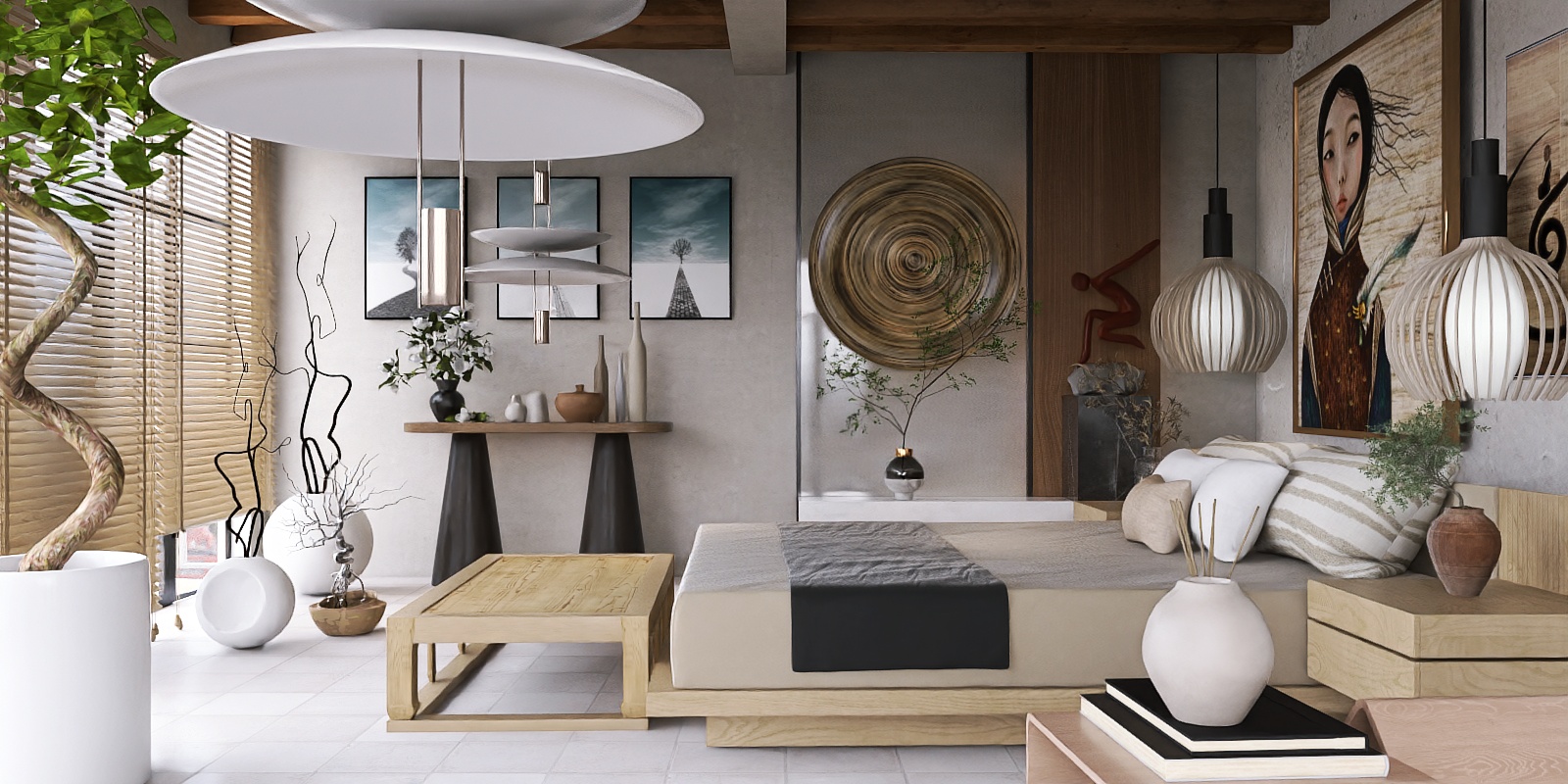 Inspired by organic minimalism, this bed blends warm, smooth wood tones with textured beige fabric, creating a calm, sophisticated vibe. Integrated side tables offer convenient storage, while the low-profile frame maximizes floor space. Ideal for a modern minimalist bedroom, pairing beautifully with marble nightstands and linen curtains for a serene, upscale atmosphere.