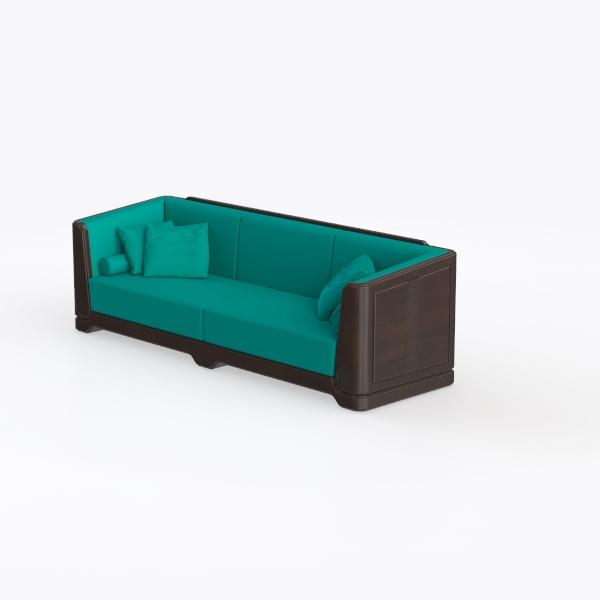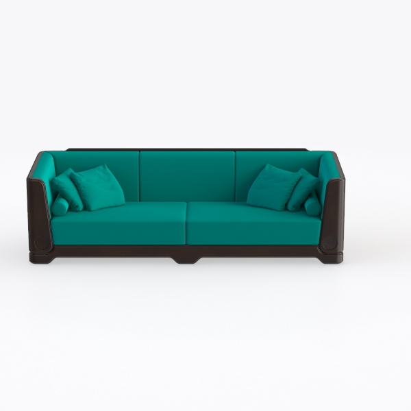 This elegant sofa embodies a thoughtful fusion of organic softness and structured sophistication, drawing inspiration from the interplay of natural textures and architectural simplicity. Its lush, velvety teal upholstery—with a subtle sheen that catches light gently—evokes the depth of a quiet forest pool, while the warm, matte brown frame, with its clean, angular lines and slightly rounded corners, adds a grounded, timeless charm. The fabric feels surprisingly plush under the hand, balancing a soft, cloud-like comfort with a hint of durability, making it as inviting to sink into as it is pleasing to the eye.