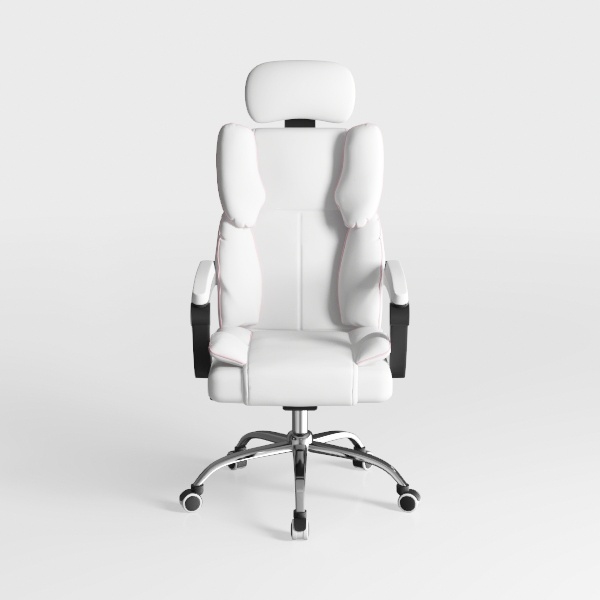 Inspired by ergonomic design, this chair merges comfort and style. Its smooth, high-quality white upholstery with soft padding and subtle pink stitching feels luxurious to the touch, while sleek black armrests and a chrome base add a modern edge. Ideal for modern home offices, it pairs with minimalist desks and warm decor, offering excellent lumbar support and easy mobility via smooth casters, balancing functionality and elegance.