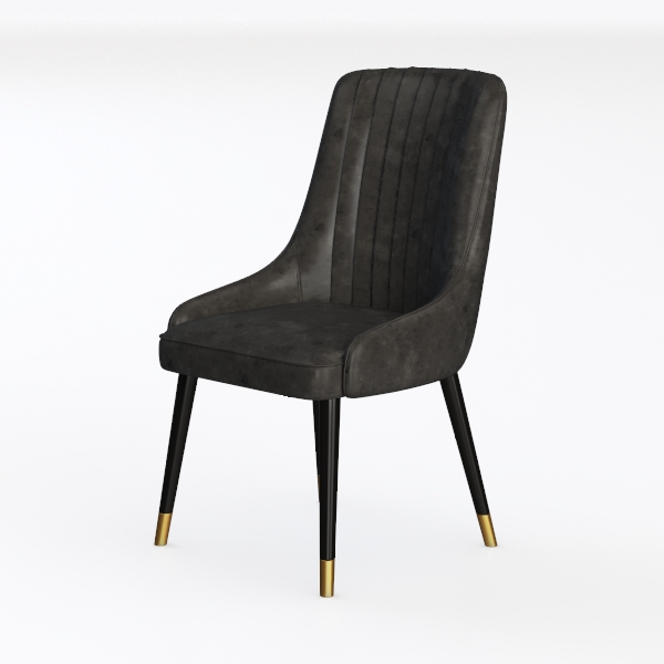 KONTE.DESIGN Set di 4 poltroncine LAWRENCE in ecopelle antracite e gambe acciaio nero, con braccioli