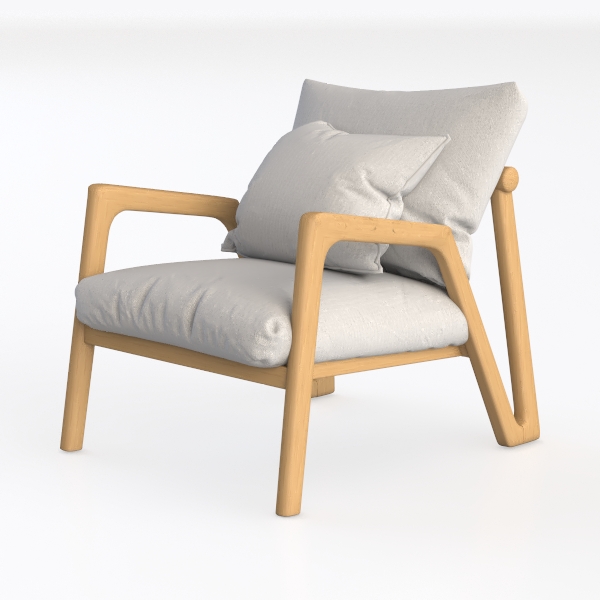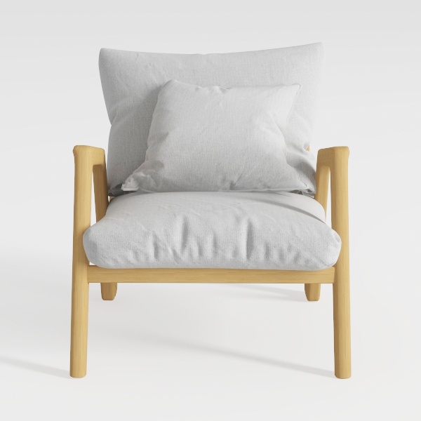 This elegant armchair embodies a harmonious blend of natural simplicity and functional design, drawing inspiration from Scandinavian minimalism and Japanese wabi-sabi aesthetics. Its light oak frame, with soft, organic curves and visible natural wood grain, evokes the warmth of untreated timber, while the smooth, light gray upholstery—crafted from a linen-like fabric—adds a tactile softness that invites relaxation. The chair’s overall silhouette is defined by clean lines and balanced proportions: the gently sloped backrest, paired with a generously sized seat, creates a sense of openness, while the low armrests offer subtle support for resting arms or setting a book. Visually, the neutral palette—warm wood against muted gray—infuses any space with calm, making it feel airy and uncluttered, whether in a minimalist living room, a cozy reading nook, or a serene bedroom.