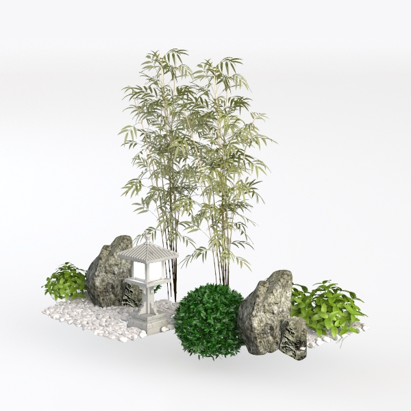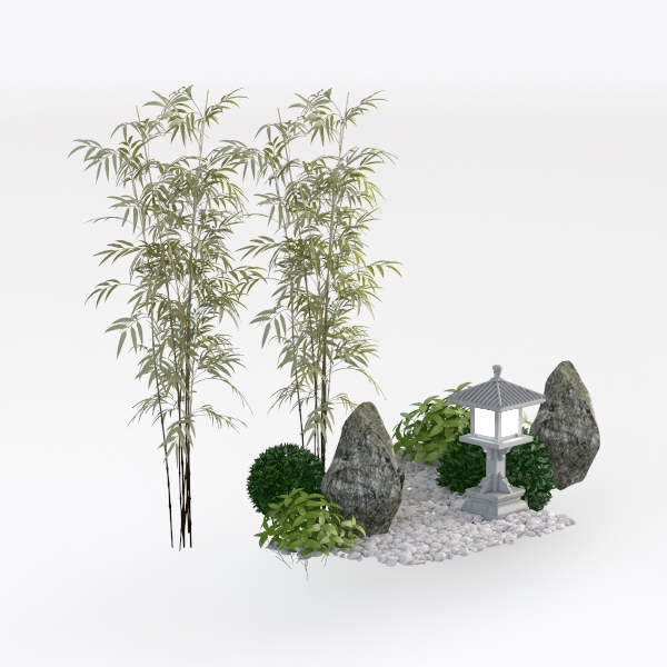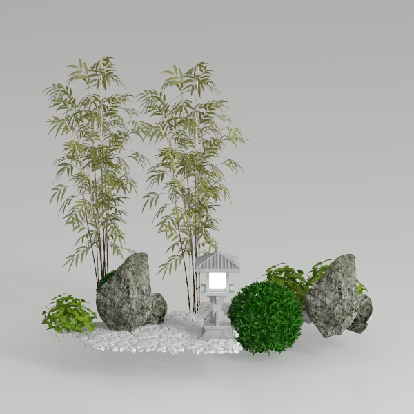 Inspired by serene traditional Japanese garden aesthetics, this scene blends slender bamboo stalks with delicate leaves, weathered stone boulders, and a stone lantern radiating soft light. Its calm, earthy palette and natural textures evoke tranquility, ideal for minimalist Zen living spaces—think tatami flooring or wooden decks—paired with neutral furniture and natural textiles. A peaceful retreat, enhancing mindfulness and relaxation.