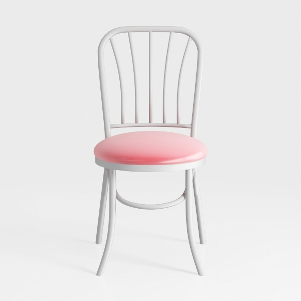 Inspired by vintage charm, this chair blends retro silhouettes with contemporary flair. Its sleek white metal frame offers smooth, cool touch, while the soft blush-pink upholstered seat adds warmth and plush comfort. The light, airy design creates a fresh focal point, perfect for a minimalist dining nook or pastel-themed living room, pairing with wooden or marble surfaces. Sturdy legs and curved back ensure stability, balancing style and practical comfort.