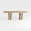 Practical and elegant, the table offers a generous surface for meals, gatherings, or workspace. The spaced legs allow easy movement underneath, perfect for small apartments, while the sturdy, natural material ensures durability. It balances form and function, inviting daily use while remaining a serene, aesthetic anchor in any room.
