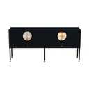 A contemporary black sideboard with striking circular stone inlays and gold accents, designed for elegant living areas, totaling 52184 polygons.