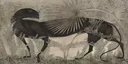 A 2D design of a mythical panther with botanical elements, featuring plant motifs and monochromatic earthy tones, and detailed surface irregularities. It has hand-painted textures and is ideal for wall murals, interior decor, or digital design.