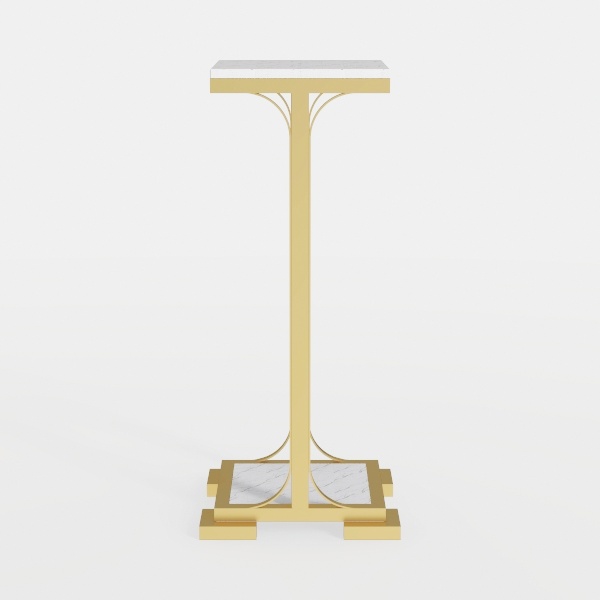 Kate and Laurel Aguilar Modern Drink Table, 9 x 9 x 23, White and Gold, Genuine Marble Accent Table for Small Spaces