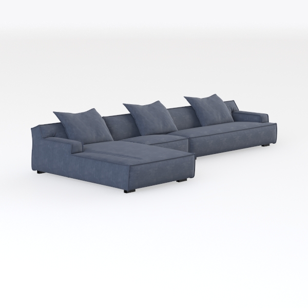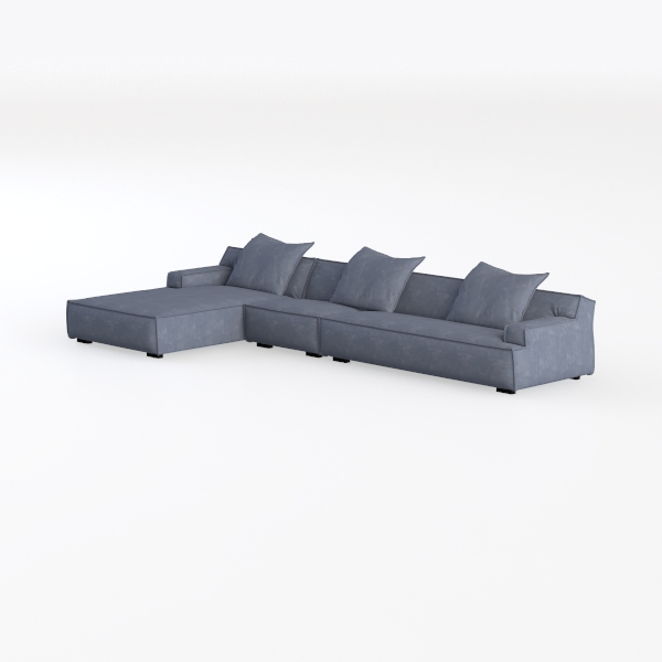 This exquisite sectional sofa draws its design inspiration from contemporary minimalist aesthetics, effortlessly blending form and function. Crafted with a soft, textured fabric in a soothing blue hue, the sofa invites you to sink in and relax. The plush cushions provide a luxurious feel, while the clean lines contribute to a sleek and modern look.