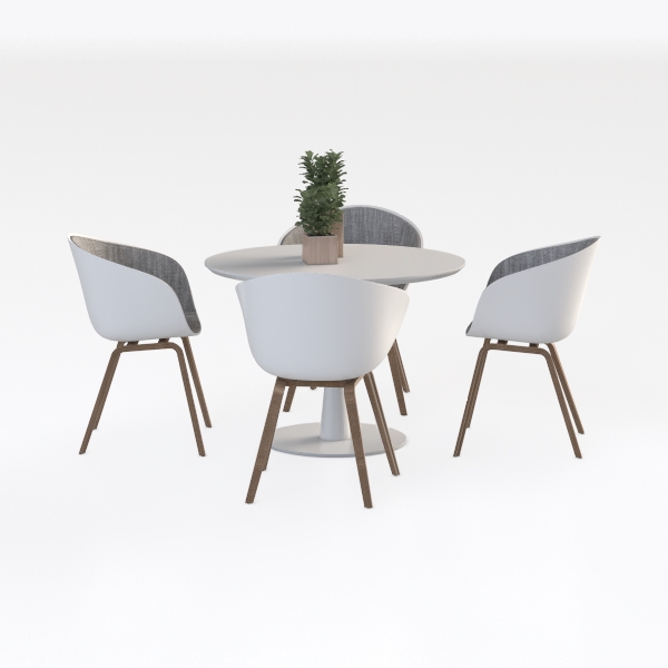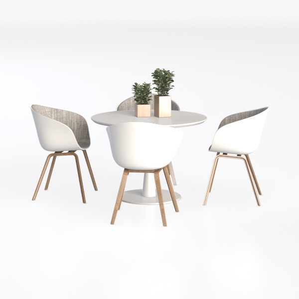 This set of furniture, featuring a round table and four chairs, embodies a blend of minimalist aesthetics and organic warmth. Its design draws inspiration from the harmony of clean geometric lines and soft natural elements, aiming to craft a space that feels uncluttered yet inviting.