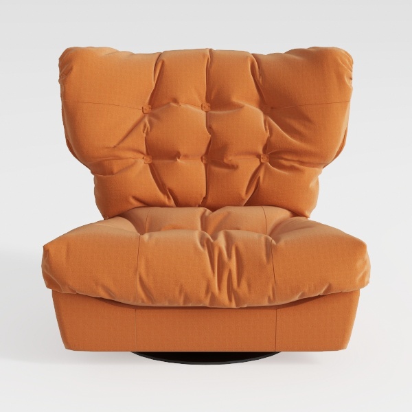 Introducing a bold and inviting armchair that draws design inspiration from cozy, retro aesthetics. The vibrant orange hue brings a warmth to any space, while the plush, tufted upholstery enhances its tactile appeal. Visually striking, the chair features a generous, oversized silhouette that beckons you to sink in and relax.