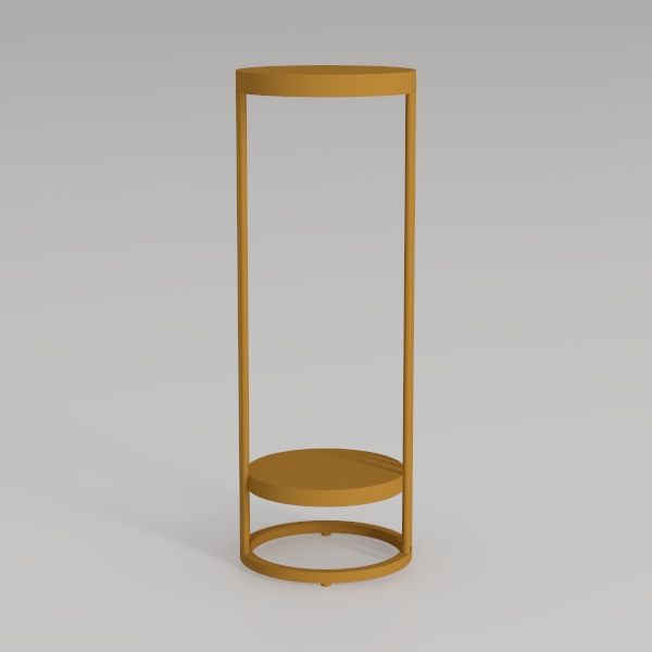 Crafted with a warm, matte gold-tone metal frame, it features a slim, vertical structure that feels light yet sturdy, with smooth, rounded edges that invite casual interaction. The top circular shelf sits at a comfortable eye level, ideal for small decor items like a potted fern or a vintage trinket, while the lower, slightly larger shelf offers additional space for books, candles, or a small lamp. Its open design creates an airy, uncluttered look, making it perfect for tight corners or open layouts where visual lightness matters.