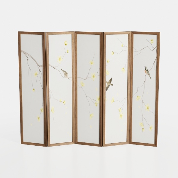 Drawing inspiration from classical Oriental aesthetics, this piece draws its essence from the quiet beauty of nature, particularly the delicate interplay of spring branches and avian life. The warm, matte wooden frame—with its soft, uneven grain—boasts a tactile richness, inviting gentle touch and grounding the design in organic warmth. Against the smooth, off-white panels, the artwork unfolds: sinuous branches, sketched in muted, flowing lines, crisscross the surface, while clusters of pale yellow blossoms nod softly, as if caught mid-bloom. Two birds, one perched on a bough and the other in mid-flight, add a lively, almost whimsical energy, infusing the scene with a sense of serene motion.