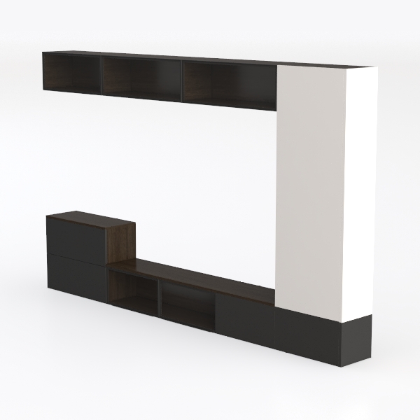 This modular piece of furniture embodies a blend of minimalist design and practical utility, inspired by the modern desire for spaces that balance aesthetics with functionality. Its form emerges from the need to maximize storage without overwhelming a room, with clean lines and thoughtful zoning that adapt seamlessly to diverse living environments.
