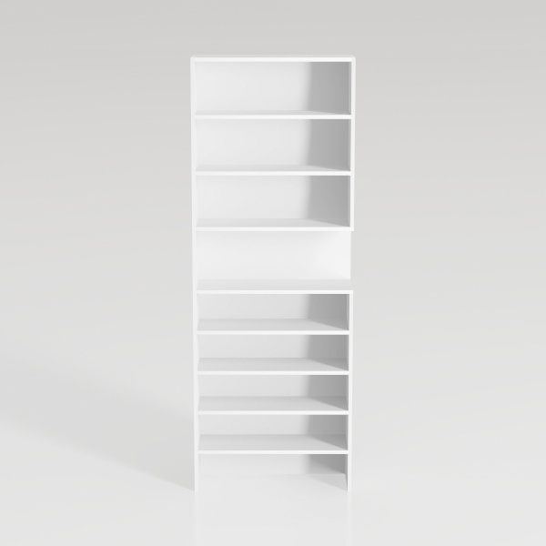 Boasting multiple tiers of varying heights, the piece offers versatile storage solutions—tall books stand upright on the lower shelves, while smaller decor items and trinkets nestle on the upper ones. Its lightweight yet sturdy construction ensures stability, and the open design allows for easy access, making daily use both convenient and aesthetically satisfying. Every element, from its crisp white hue to its thoughtful layering, comes together to create a functional yet beautiful addition to any home.