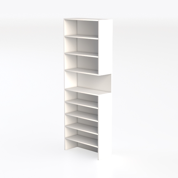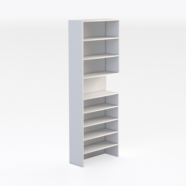 This elegant storage piece embodies the essence of minimalist design, drawing inspiration from the "less is more" philosophy that prioritizes clean lines and functional simplicity. Crafted with meticulous attention to detail, its smooth, matte white surface feels exquisitely cool to the touch—fine and untextured, like a gentle caress against the hand—while the subtle sheen of the material reflects light softly, enhancing the room’s brightness and openness. The geometric symmetry of its layered structure, with uniform width and balanced spacing, creates a visually harmonious silhouette that never overwhelms the space, instead acting as a calm, grounding element.