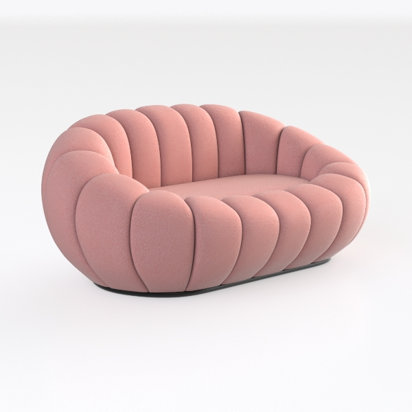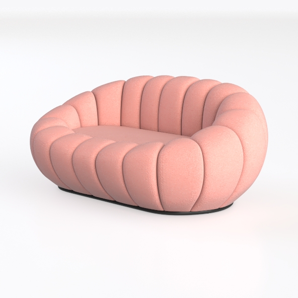 Inspired by contemporary design, this uniquely shaped sofa features an inviting, plush silhouette that instantly captures attention. The soft pink hue adds a touch of warmth and playfulness, making it an ideal statement piece for a modern living space. The fabric offers a tactile, velvety softness that invites you to sit back and relax, enhancing the overall comfort.