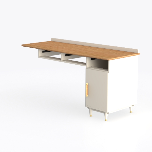 Practical and versatile, it features a generous work surface for laptops, books, and daily essentials, with a lower shelf for frequently used items. The enclosed cabinet offers hidden storage for stationery or gadgets, while the balanced proportions ensure it fits seamlessly into tight areas without feeling bulky, making it both visually striking and highly functional.