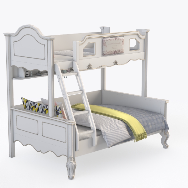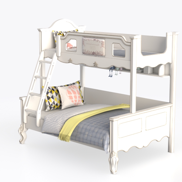 This charming bunk bed draws inspiration from nostalgic childhood aesthetics, merging classic design elements with a soft, inviting atmosphere. Its clean white finish exudes purity, while intricate carved details along the headboard and footboard add subtle elegance, evoking the warmth of a well-loved storybook setting.