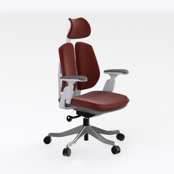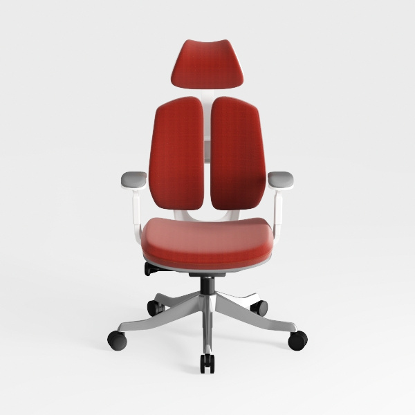 Crafted with a focus on holistic comfort, this chair takes cues from the harmony between human-centric design and contemporary aesthetics, aiming to transform daily sitting moments into a balanced experience. The rich, terracotta-red upholstery feels surprisingly supple to the touch, with a fine, woven texture that adds subtle dimension without sacrificing softness, while the matte-white frame—sleek and angular—contrasts gently, creating a warm yet modern visual rhythm. Its silhouette is defined by intentional curves: a slightly tilted headrest cradles the neck, and the backrest, split into two ergonomic lobes, follows the natural spine’s curve, ensuring support even during long workdays.
