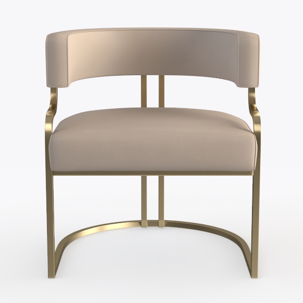 Drawing inspiration from mid-century modern design principles and Art Deco minimalism, this chair merges geometric precision with soft, flowing lines. Its curved backrest and gently sloped armrests echo the organic curves of classic furniture, while the streamlined metal frame nods to architectural simplicity, creating a piece that feels both timeless and contemporary.