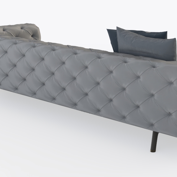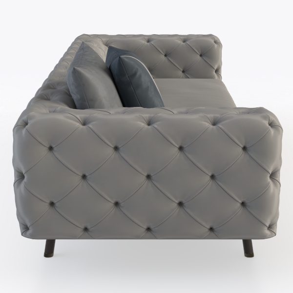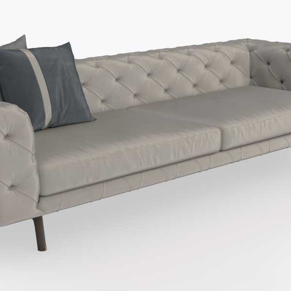 Introducing a stunning sofa that redefines contemporary elegance, drawing inspiration from classic chesterfield designs. The luxurious, tufted upholstery exudes a plush texture that invites you to sink in and relax. The soft grey color adds a touch of modern sophistication, making it a versatile addition to various interior styles.