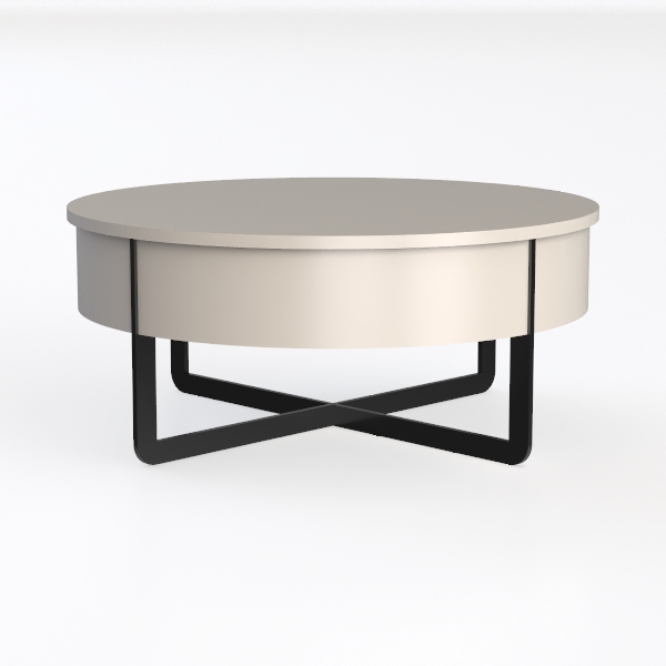 This elegant piece draws inspiration from the harmony of organic curves and geometric precision, blending soft, rounded forms with sharp, structural elements to create a balanced focal point for living spaces. Visually, its clean, white circular top exudes a sense of calm and brightness, while the smooth, matte finish catches light gently, avoiding harsh glare. The lower section features a subtly curved, white drawer with a seamless handle, complementing the top’s shape and adding a touch of understated functionality. Below, thin, black metal legs form a minimalist “X” base, their sleek lines balancing the table’s width and creating an airy, uncluttered silhouette that never feels heavy.