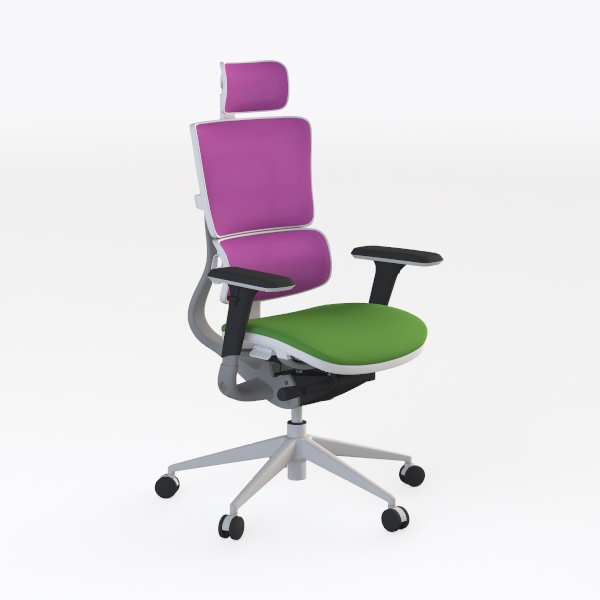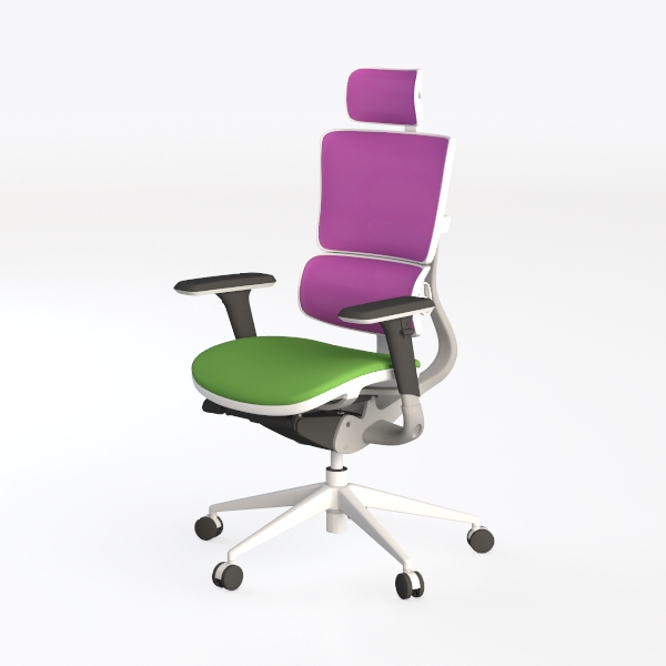 Inspired by the vibrant interplay of natural hues found in blooming flora, this chair blends bold color blocks with sleek, contemporary lines to infuse spaces with energy and creativity. The smooth, breathable upholstery of the backrest and seat offers a soft yet supportive feel, while the gradient from deep purple to fresh green creates a striking visual contrast against the clean white frame, making it a focal point that balances modern minimalism with playful warmth. Its matte black armrests and sturdy casters add a touch of understated elegance, enhancing the overall aesthetic.