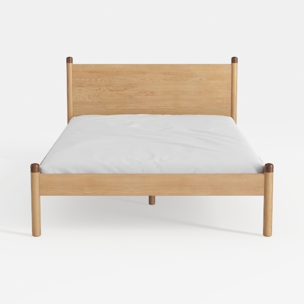 Rooted in the essence of natural simplicity, this piece takes cues from the harmonious blend of minimalism and organic design, drawing inspiration from the quiet beauty of unadorned woodlands and the clean lines of Scandinavian craftsmanship. Crafted from solid oak, its frame boasts a warm, honeyed hue that highlights the wood’s unique, wavy grain—each piece bearing subtle knots and textures that tell a story of nature’s artistry. The surface is gently sanded to a smooth, tactile finish, inviting a soft touch that feels both cool and grounding, while the crisp, unadorned white linen mattress contrasts gently, enhancing the bed’s understated elegance.