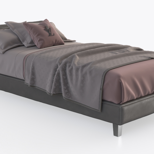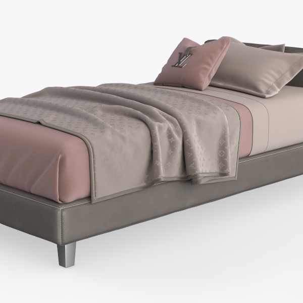 This bed embodies a blend of modern minimalist elegance and cozy functionality, inspired by the pursuit of a serene, sophisticated retreat in daily life. Its design centers on balanced proportions, with a soft gray upholstered headboard that feels warm and tactile, complemented by a smooth pink bedspread that adds gentle contrast. A subtle, branded pink cushion introduces a touch of refined personality, enhancing the overall charm without overcomplicating the aesthetic.