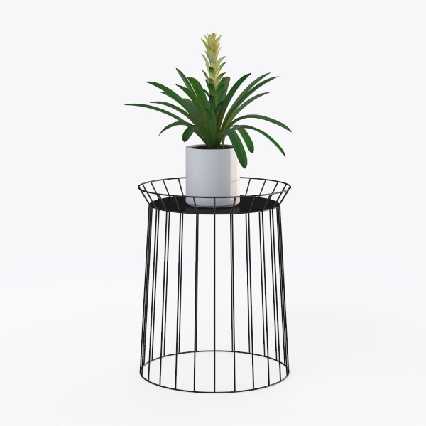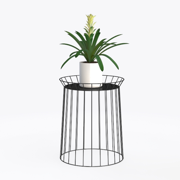 The design of this accent piece is rooted in a harmonious blend of minimalist simplicity and industrial edge, aiming to bring both functionality and visual intrigue to living spaces. Crafted with a focus on clean lines and balanced proportions, the structure features a slender black metal frame—its rods arranged in a circular, open pattern that feels light and non-intrusive, while still offering sturdy support. The top surface, a smooth, matte black platform, provides a neutral canvas that contrasts subtly with the organic elements it holds.