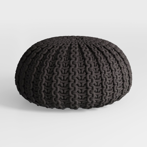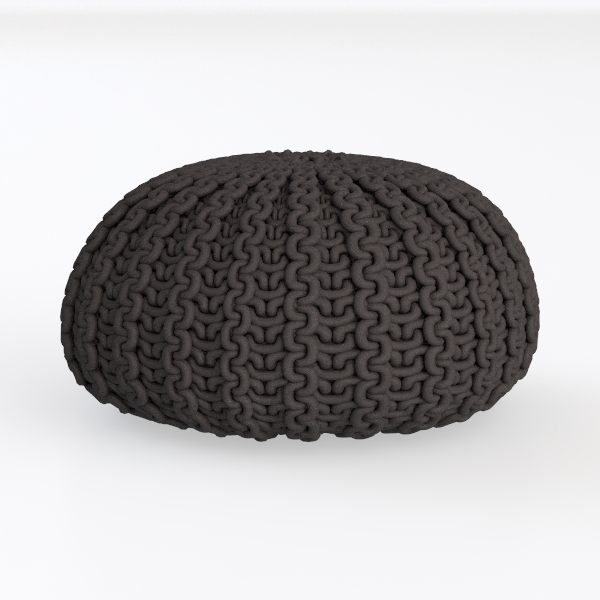 Inspired by contemporary design aesthetics, this unique pouf merges artistic flair with practical functionality. Its intricate surface, resembling a textured web of chains, offers a tactile experience that invites touch and interaction. The rich, dark hue adds a sophisticated depth, making it a versatile piece suitable for various interior styles.