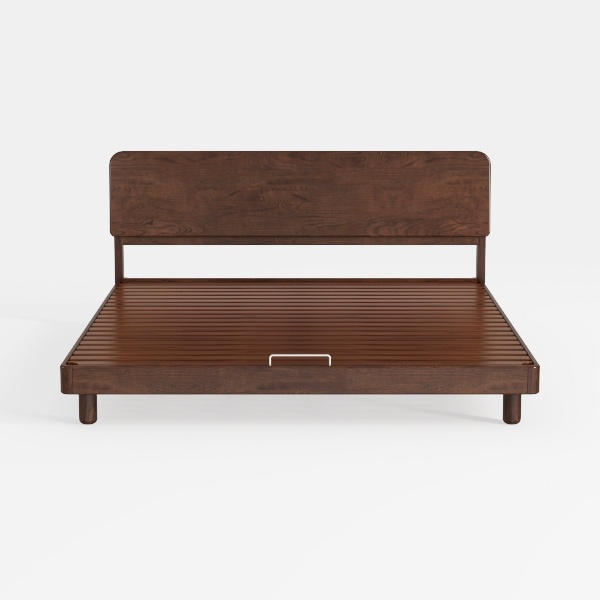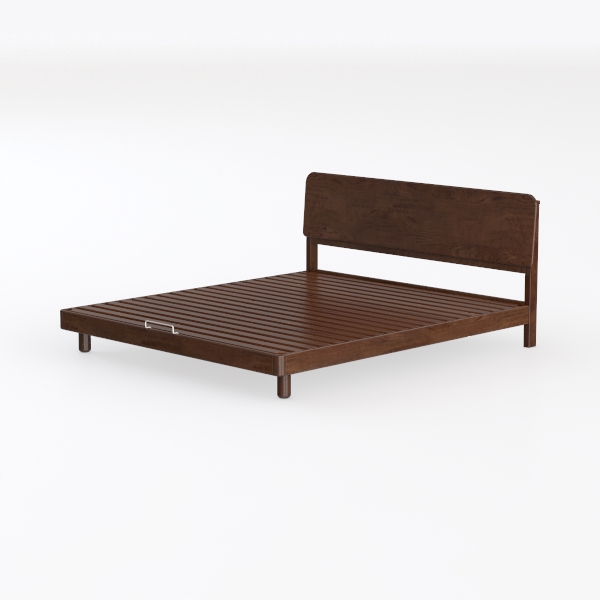 This bed shines in a calm, understated bedroom—ideal for a modern,日式 (oops, no Chinese) or transitional style. Pair it with a low-profile, upholstered ottoman at the foot for extra seating, a marble-topped nightstand with a brass lamp, and sheer linen curtains to soften the light. Muted tones like soft gray, warm ivory, or sage green on the walls will let the bed’s rich wood tone take center stage, while a shaggy wool rug adds cozy texture underfoot.