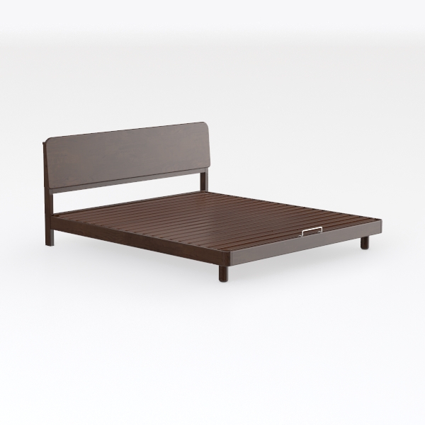 Inspired by the quiet elegance of Scandinavian design and the organic beauty of natural materials, this piece balances minimalism with warmth. Its frame, crafted from solid ash wood with a deep, chestnut finish, reveals the wood’s inherent grain—subtle, irregular patterns that shift in the light, creating a sense of depth and connection to nature. The headboard, a softly rounded slab, sits slightly above the slatted base, curving gently to cradle the back, while the legs, thin and tapered, lift the structure, making the space below feel light and uncluttered.