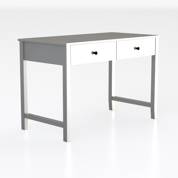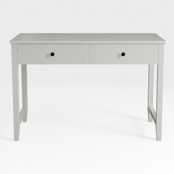 Two roomy drawers, fitted with small, round black pulls, offer practical storage for essentials—think pens, notebooks, or skincare products—while the stable, open-legged design keeps the space feeling uncramped. Whether used for work, writing, or as a vanity, its balanced proportions and understated charm make it a versatile addition to any home.