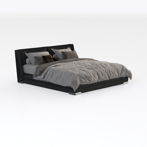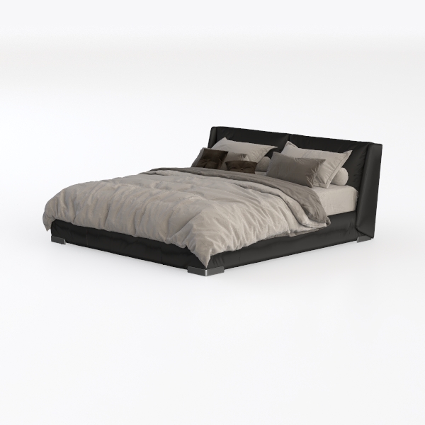 Designed with minimalist elegance in mind, this piece draws inspiration from the harmony of clean lines and organic textures, creating a serene sanctuary for the bedroom. The headboard, upholstered in smooth matte black fabric, offers a soft yet substantial touch, while the bedspread, in muted gray linen-like material, adds warmth and tactile comfort. Visually, the contrast between the dark headboard and light bedding forms a balanced, calming atmosphere, with its streamlined silhouette enhancing the room’s sense of spaciousness.