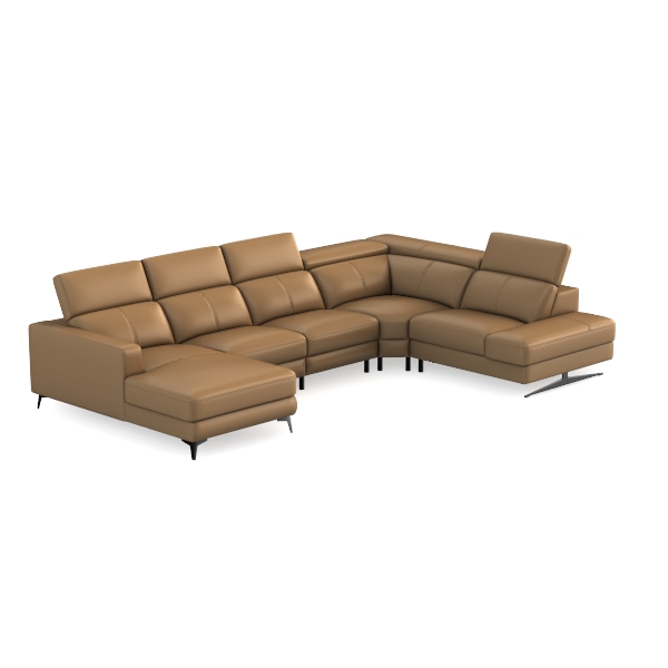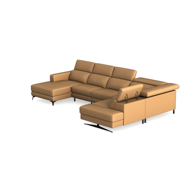 Introducing a stunning sectional couch that redefines comfort and style. Drawing inspiration from modern minimalist design, this piece boasts a sleek silhouette that complements any contemporary living space. The rich, warm leather upholstery adds a touch of luxury, while the subtle sheen enhances its sophisticated appeal.