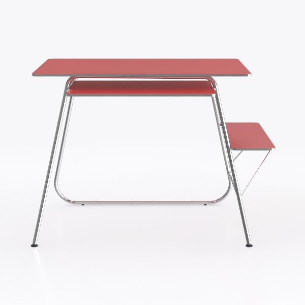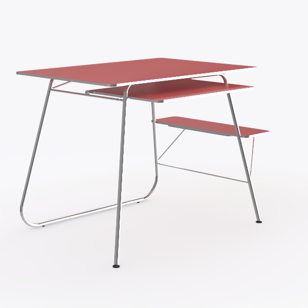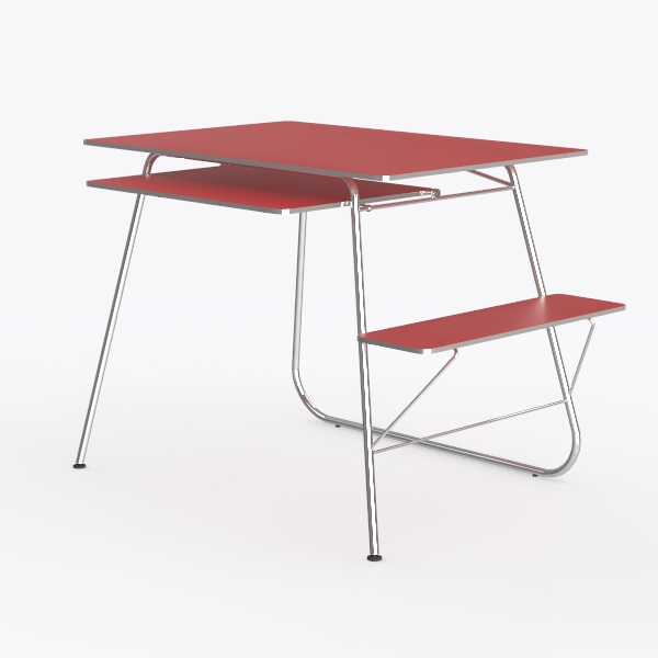 The wide main surface provides ample room for daily essentials, while the lower shelf (hidden beneath the main tabletop) offers additional storage for books or stationery, maximizing utility in compact spaces. Every detail—from the seamless edge of the red top to the delicate taper of the metal legs—speaks to intentional design, creating a piece that feels both timeless and fresh.