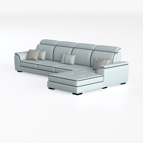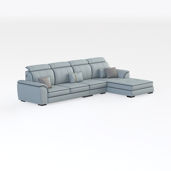 Inspired by contemporary design trends, this exquisite sofa combines elegance with practicality. The soft, light blue upholstery exudes a serene ambiance, inviting relaxation and comfort. Its smooth texture offers a pleasant tactile experience, accentuated by stylish contrasting stitching that adds a touch of sophistication.