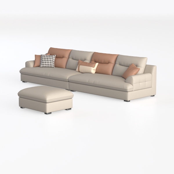 Functionality shines here: the deep, generously padded seat cushions cradle the body in plush comfort, while the modular design includes a matching ottoman that doubles as extra seating, a footrest, or a casual surface for snacks and books. Tapered, low-profile legs keep the piece light on its feet, enhancing its airy aesthetic, while tufted backrest details add subtle texture without overwhelming the clean lines. This sofa isn’t just furniture—it’s a thoughtful addition that merges style and comfort to transform a living space into a haven of calm.