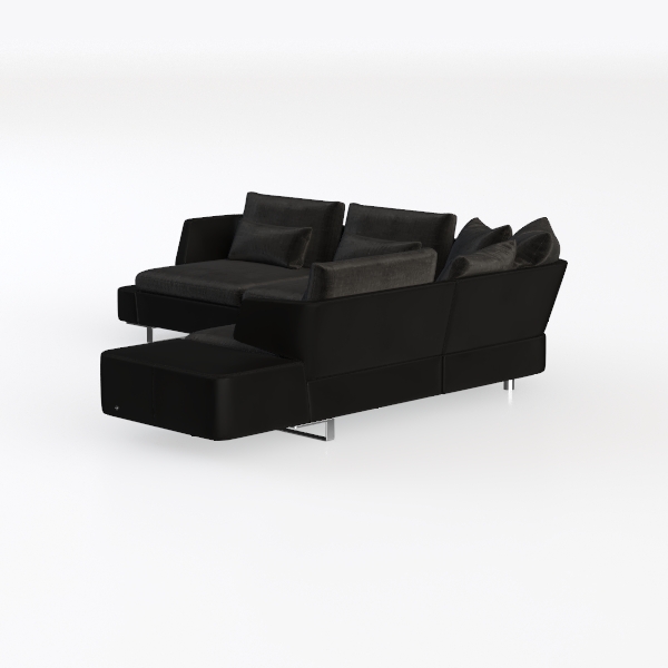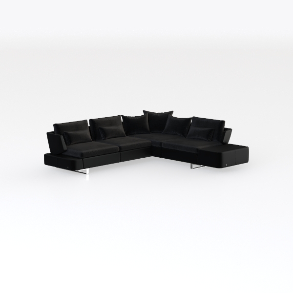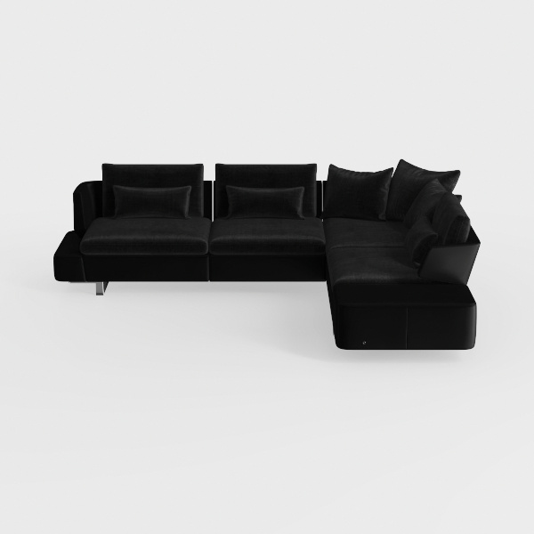 Inspired by the ethos of modern minimalism, this sofa blends clean, uncluttered lines with thoughtful ergonomic design, crafted to elevate living spaces with both style and purpose. Its plush, velvety upholstery feels incredibly soft to the touch, with a rich, deep black hue that exudes sophistication and warmth, while the smooth, seamless transitions between the main seating area and the extended chaise create a visually harmonious silhouette that catches the eye without overwhelming the room.