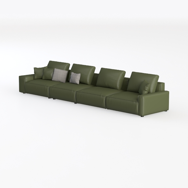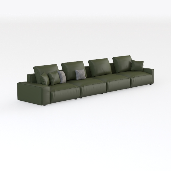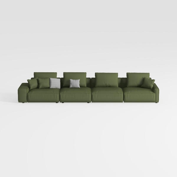 This olive-green modular sofa embodies a harmonious blend of natural inspiration and modern minimalism. Its design draws from the organic flow of forest canopies and the uncluttered elegance of Scandinavian aesthetics, balancing soft curves with sharp, structured edges to create a piece that feels both grounded and airy.