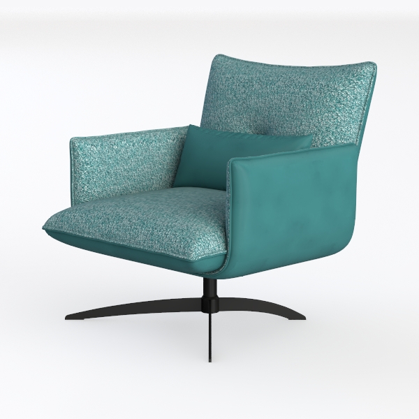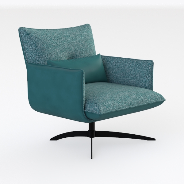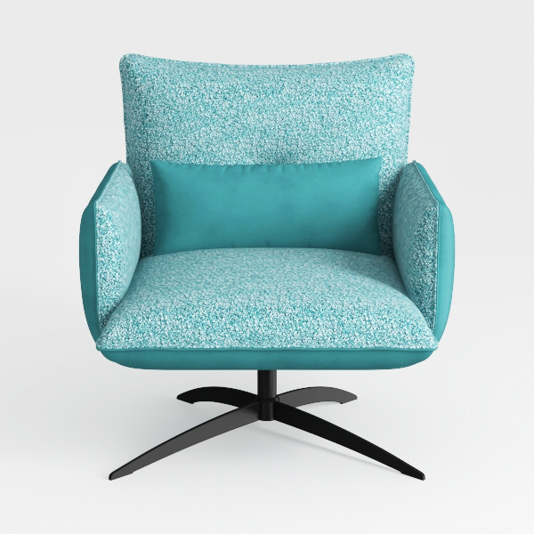 Inspired by the soft textures of ocean waves and subtle botanical patterns, this armchair features a light teal upholstery with a delicate, speckled finish. Its plush, deep seat offers exceptional comfort, while the sleek black star-shaped base adds a modern touch. Perfect for a minimalist or Scandinavian living room, it pairs beautifully with wooden coffee tables and metallic floor lamps, enhancing both style and relaxation.