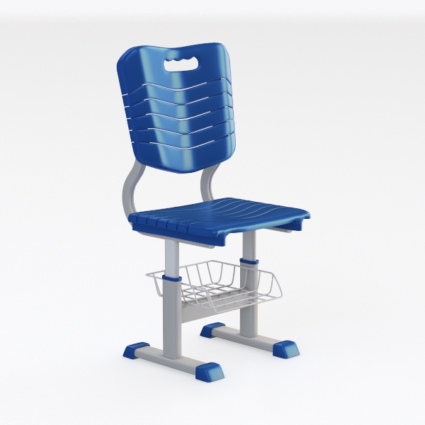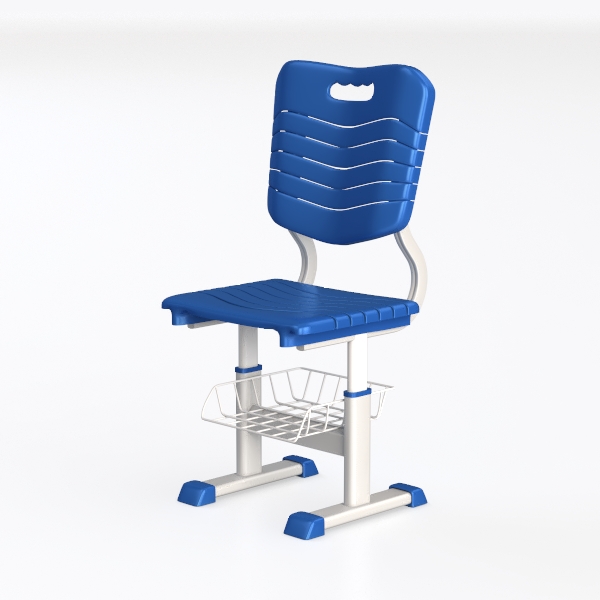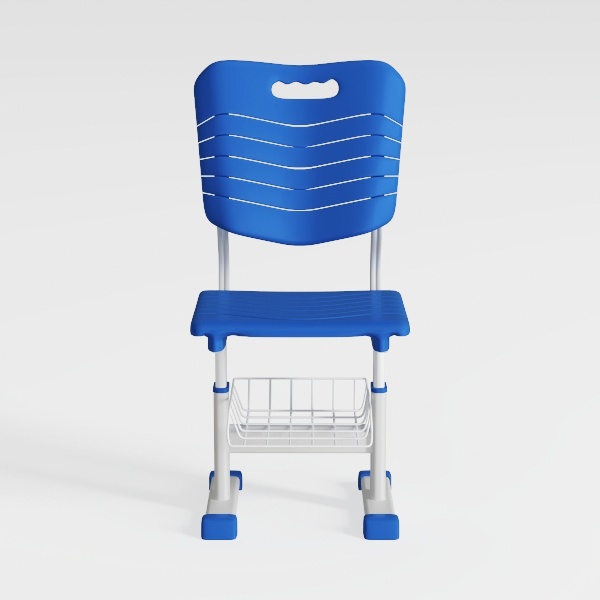 Inspired by modern minimalism, this chair blends sleek blue plastic with white metal accents, offering a fresh, clean look. Its smooth surface feels cool yet comfortable, while the lower metal basket adds practical storage. Perfect for a child’s room or study, it pairs well with wooden desks and soft lighting, enhancing cozy, functional spaces.