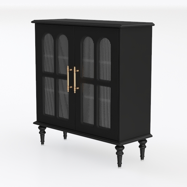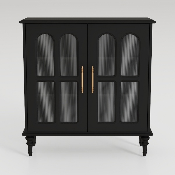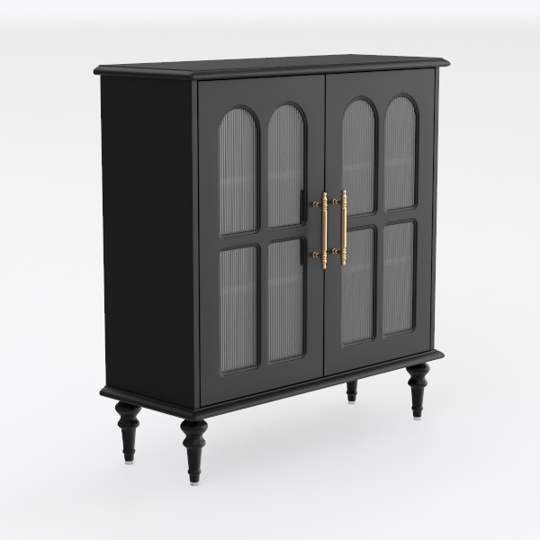 Inspired by classic vintage furniture, blending 19th-century elegance with modern minimalism. Matte black finish feels smooth and cool; gold metal handles add subtle shine, frosted glass doors filter light gently, creating a warm, elegant vibe. Ideal for a vintage living room or study, pairing with marble coffee tables and brass floor lamps, enhancing timeless charm. Ample storage inside, sturdy curved legs elevate it, leaving space for decor or daily items.