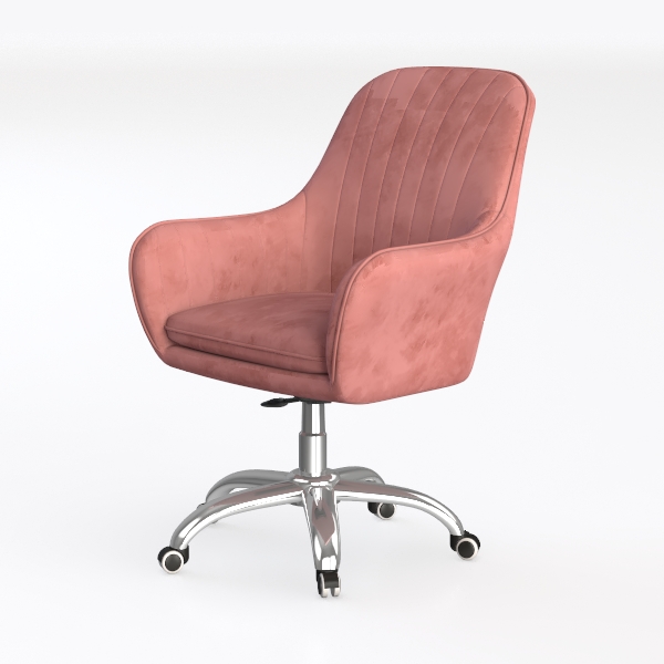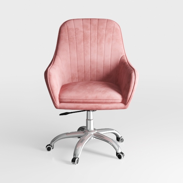 Designed to blend vintage charm with modern comfort, this chair takes inspiration from soft pastels and classic silhouettes. Its plush velvet upholstery offers a luxurious touch, while the curved back and armrests cradle the body in gentle support. The matte pink hue adds warmth, complemented by a sleek chrome base and smooth-rolling casters for a polished look. Ideal for a cozy home office or chic bedroom nook, it pairs beautifully with wooden desks or marble vanities, ensuring all-day comfort with adjustable height.