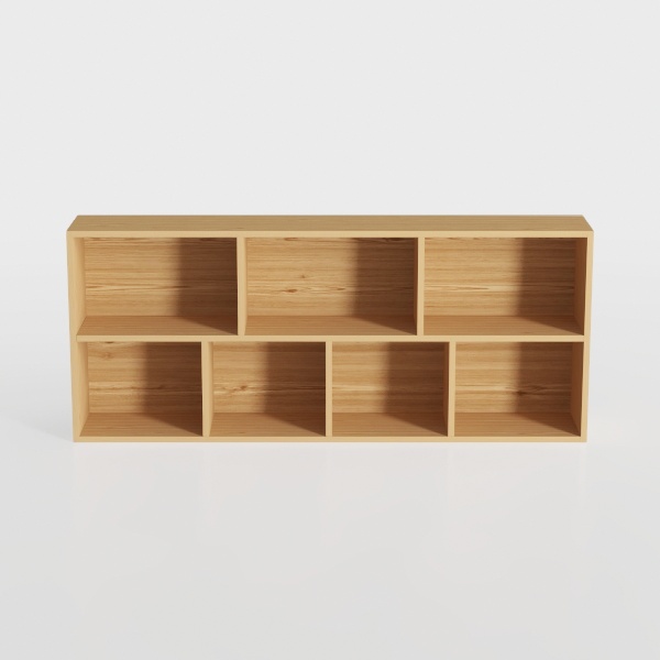 Designed to echo nature’s simplicity, its clean lines and warm wood tones draw from Scandinavian minimalism. Crafted with smooth, sanded surfaces, the natural wood grain adds subtle texture, while soft, warm tones create a calm, inviting atmosphere under soft light. Perfect for modern minimal or Scandinavian living rooms, it pairs beautifully with linen sofas and potted greenery, blending functionality with understated elegance. Six modular compartments offer flexible storage—ideal for displaying books, plants, or decor, balancing space efficiency with aesthetic appeal.