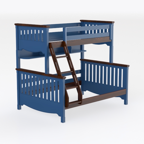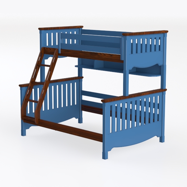 Blending timeless charm with practical space-saving design, this double bed features a sleek blue frame and warm wooden accents. Smooth to touch and visually balanced, it suits kids' rooms or family guest spaces, enhancing cozy, modern or classic aesthetics. Sturdy ladder and guardrails ensure safety, making it both functional and stylish.